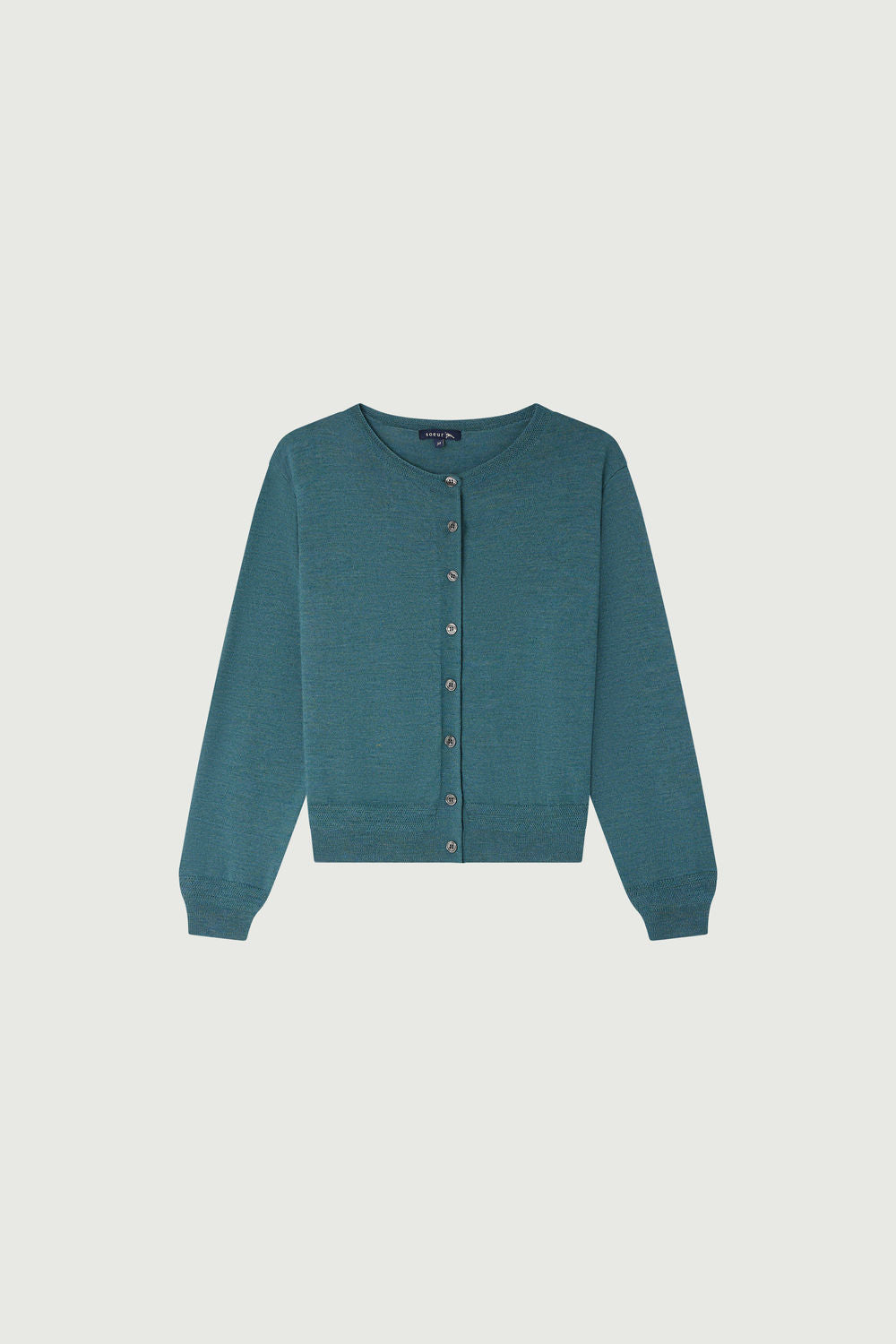 TITA is a short, boxy cardigan. It's knitted from fine merino wool, soft enough to wear against the skin or layered over other pieces. The sleeves and hemline feature a textured stitch that adds a unique touch. It pairs beautifully with high-waisted jeans or a sleek skirt.
