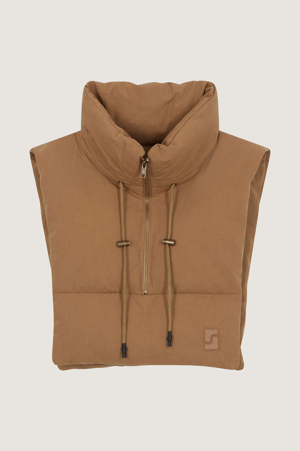 Water-repellent cotton padded collar beige