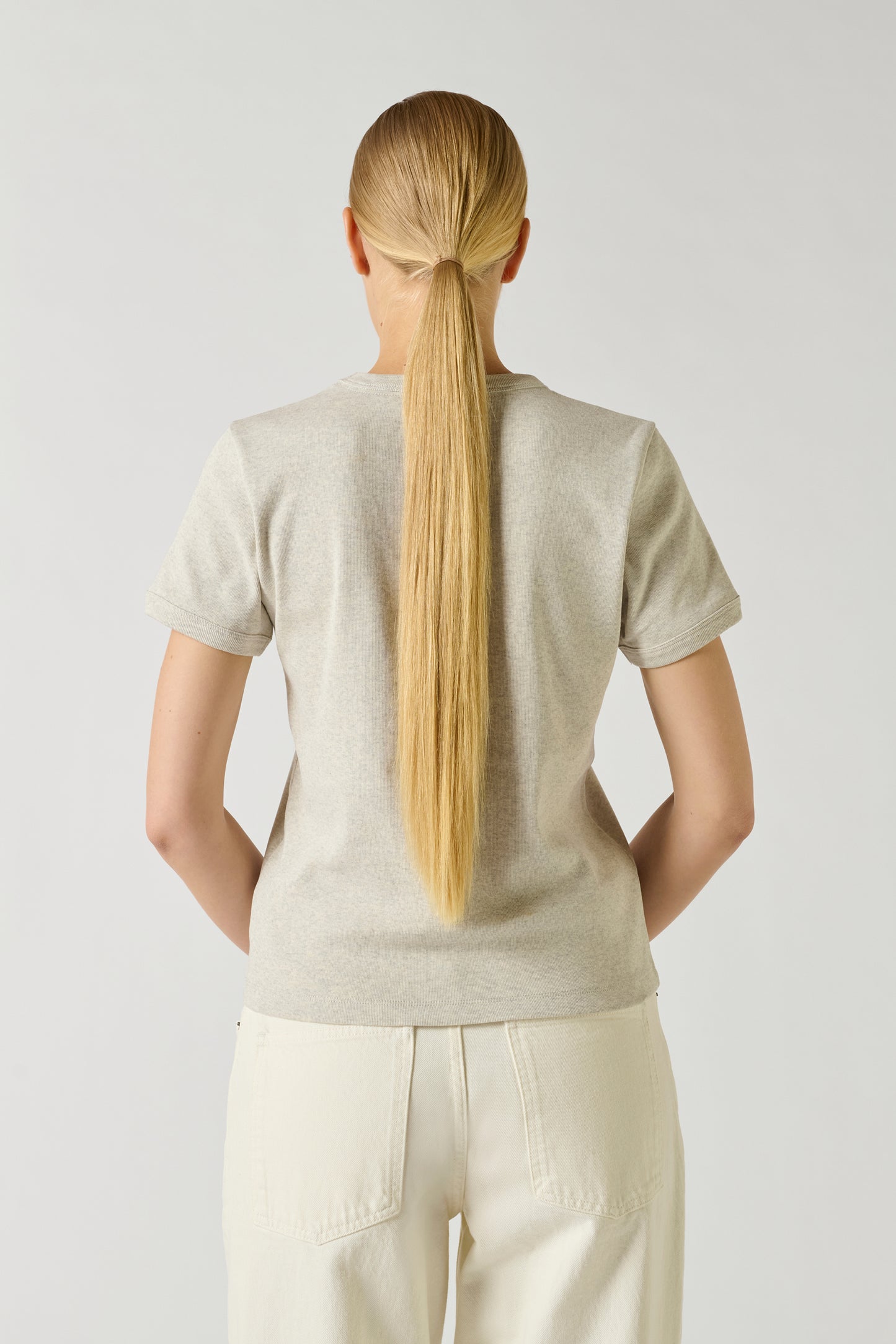 Ribbed and Embroidered T-shirt mottled grey